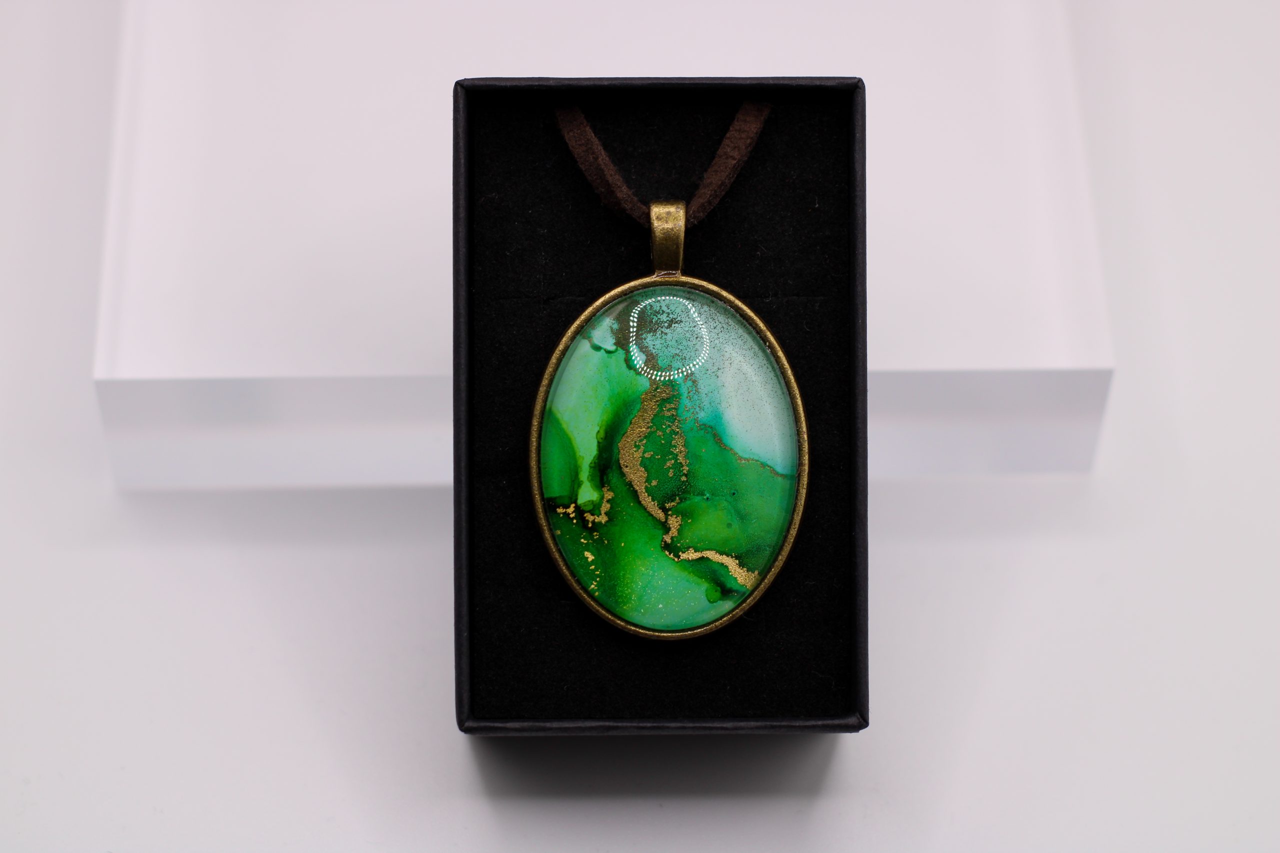 Eredeti, saját festményem egy darabja került beépítésre ebbe az ovális 30x40mm átmérőjű antikolt bronz alapba.