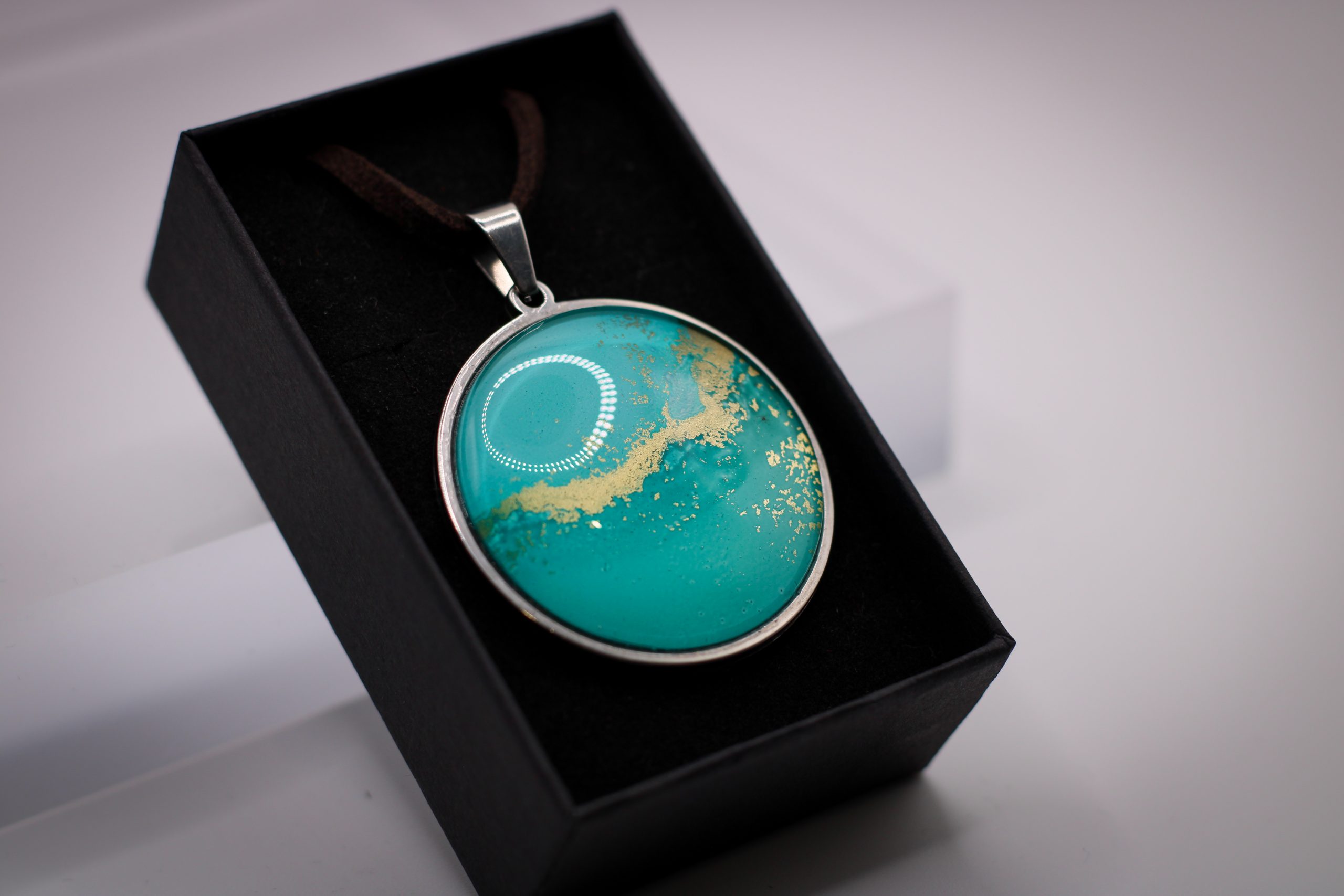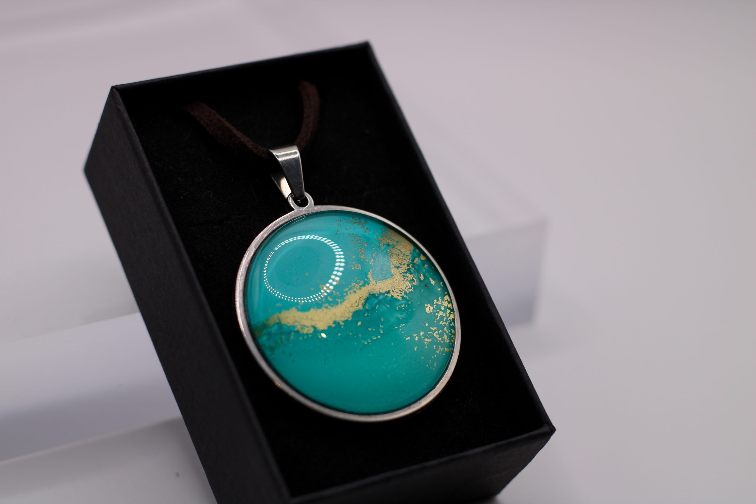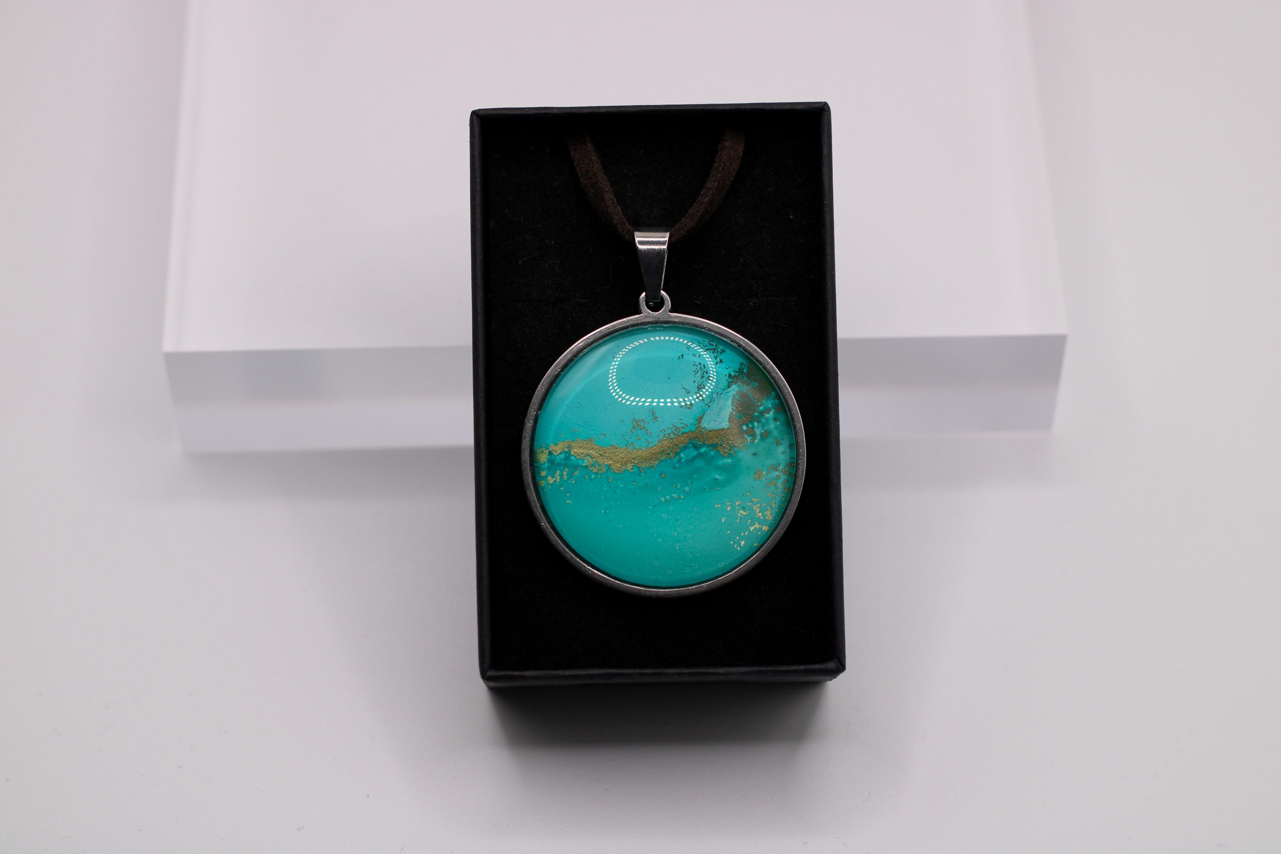 A lagúna tisztaságát idézi ez a nemesacél alapra készült medál.