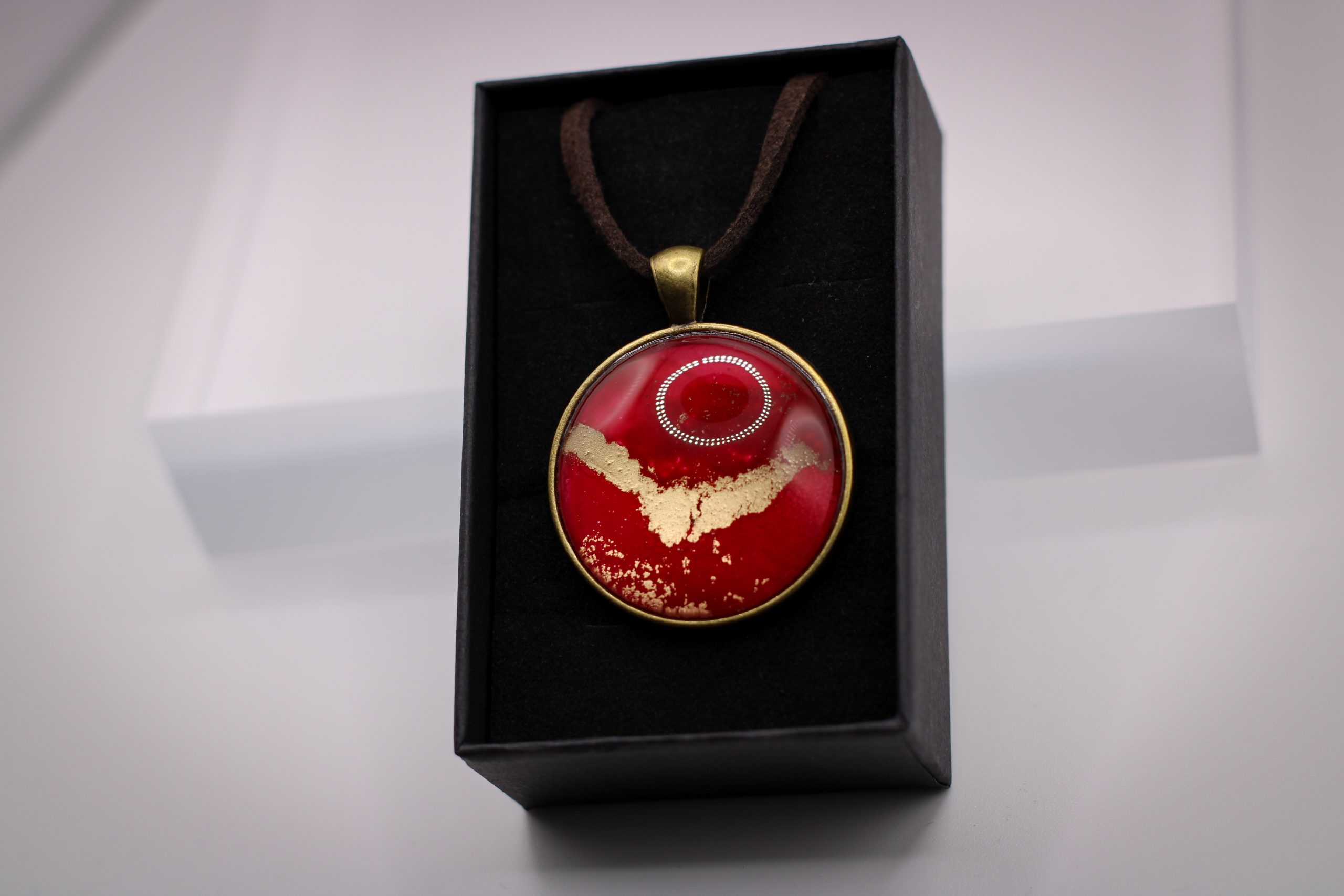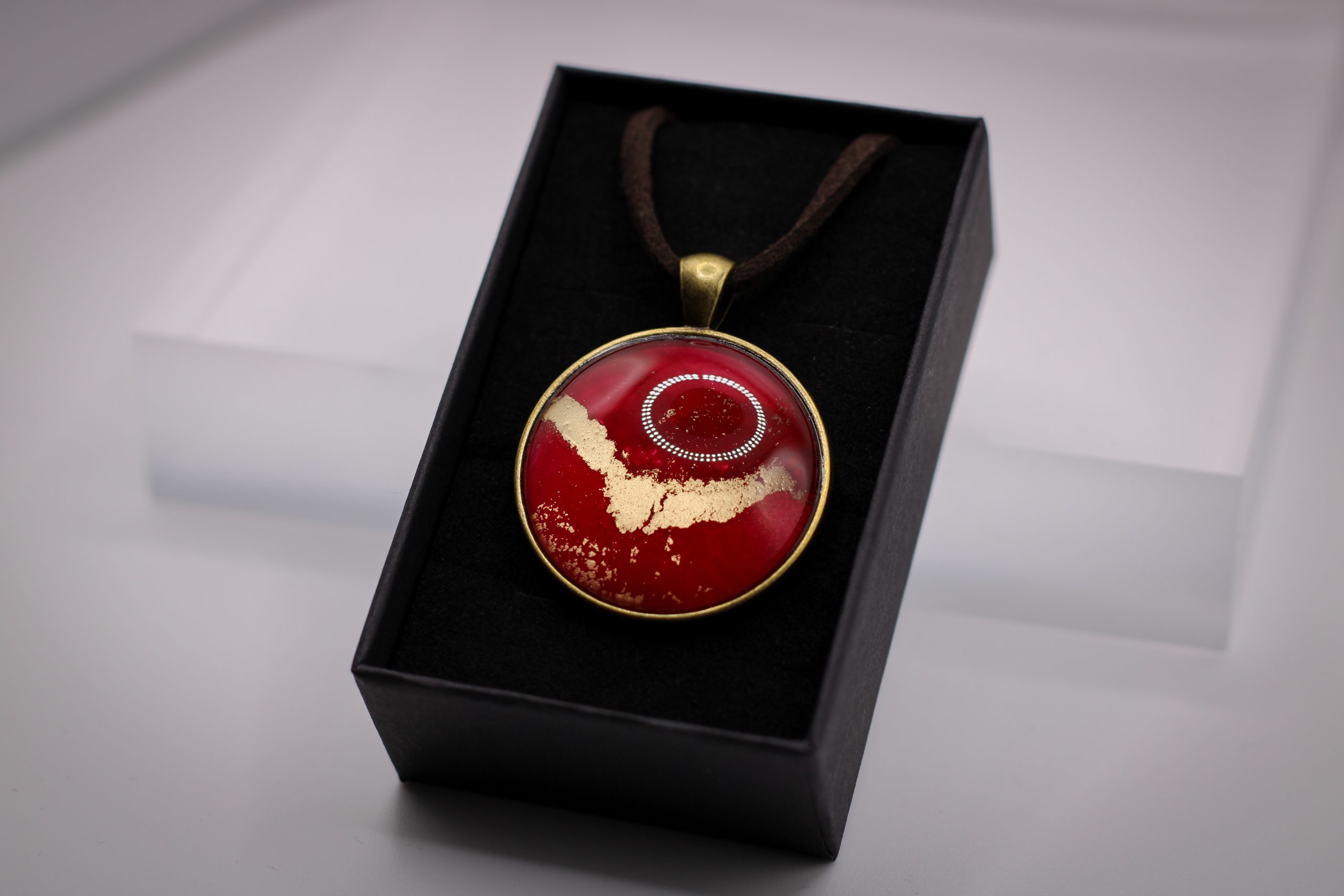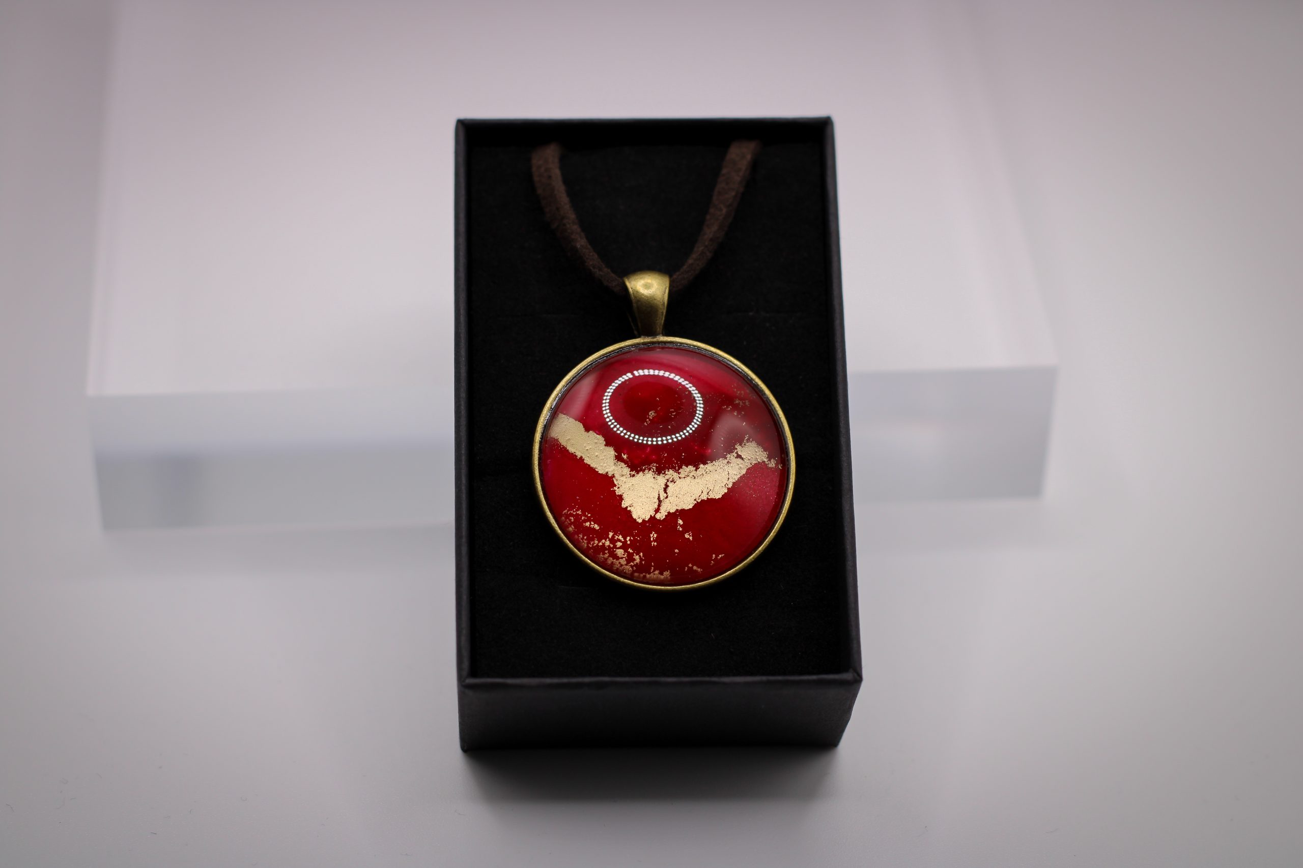 Eredeti, saját festményem egy darabja került beépítésre ebbe a 30mm átmérőjű antikolt bronz alapba.