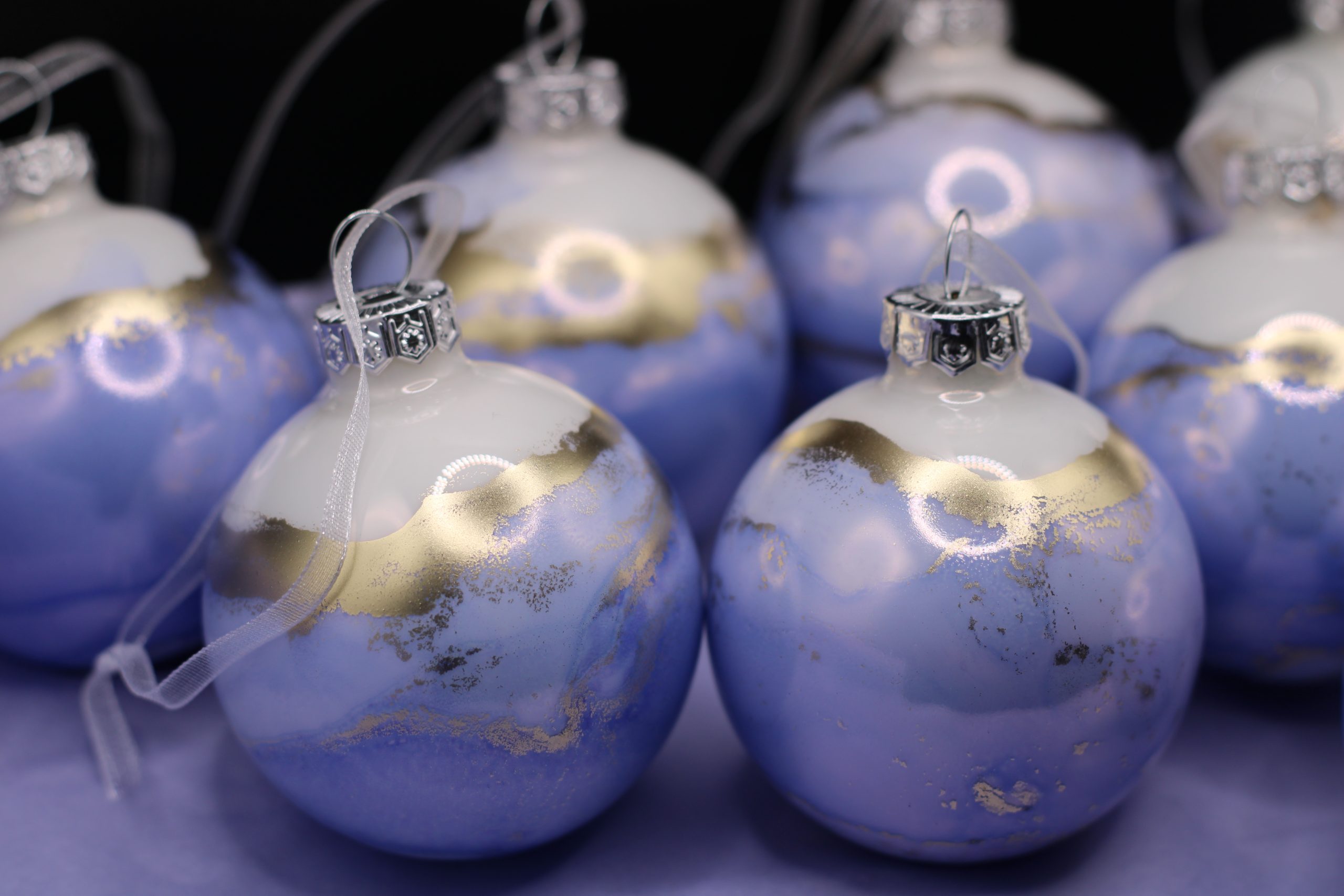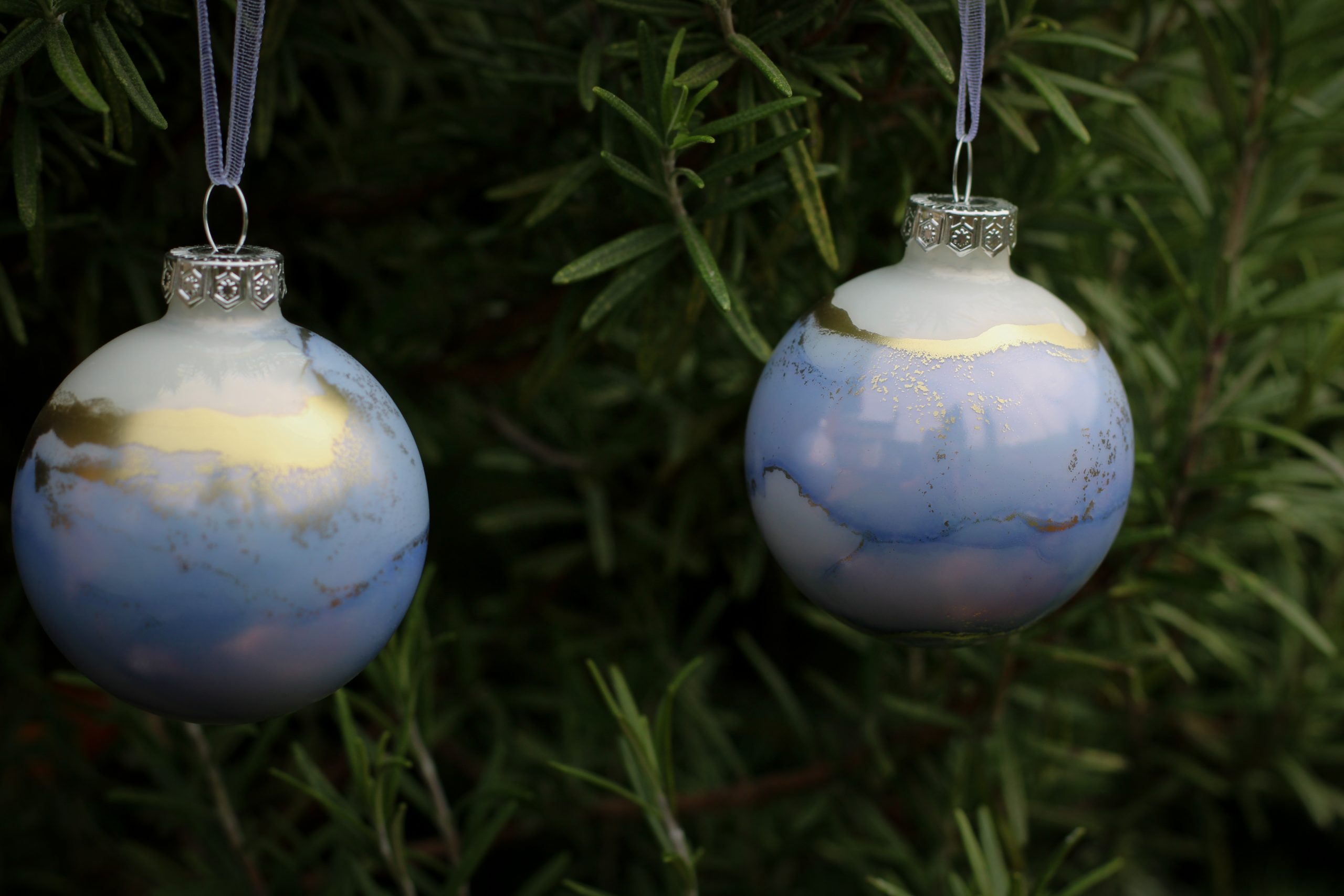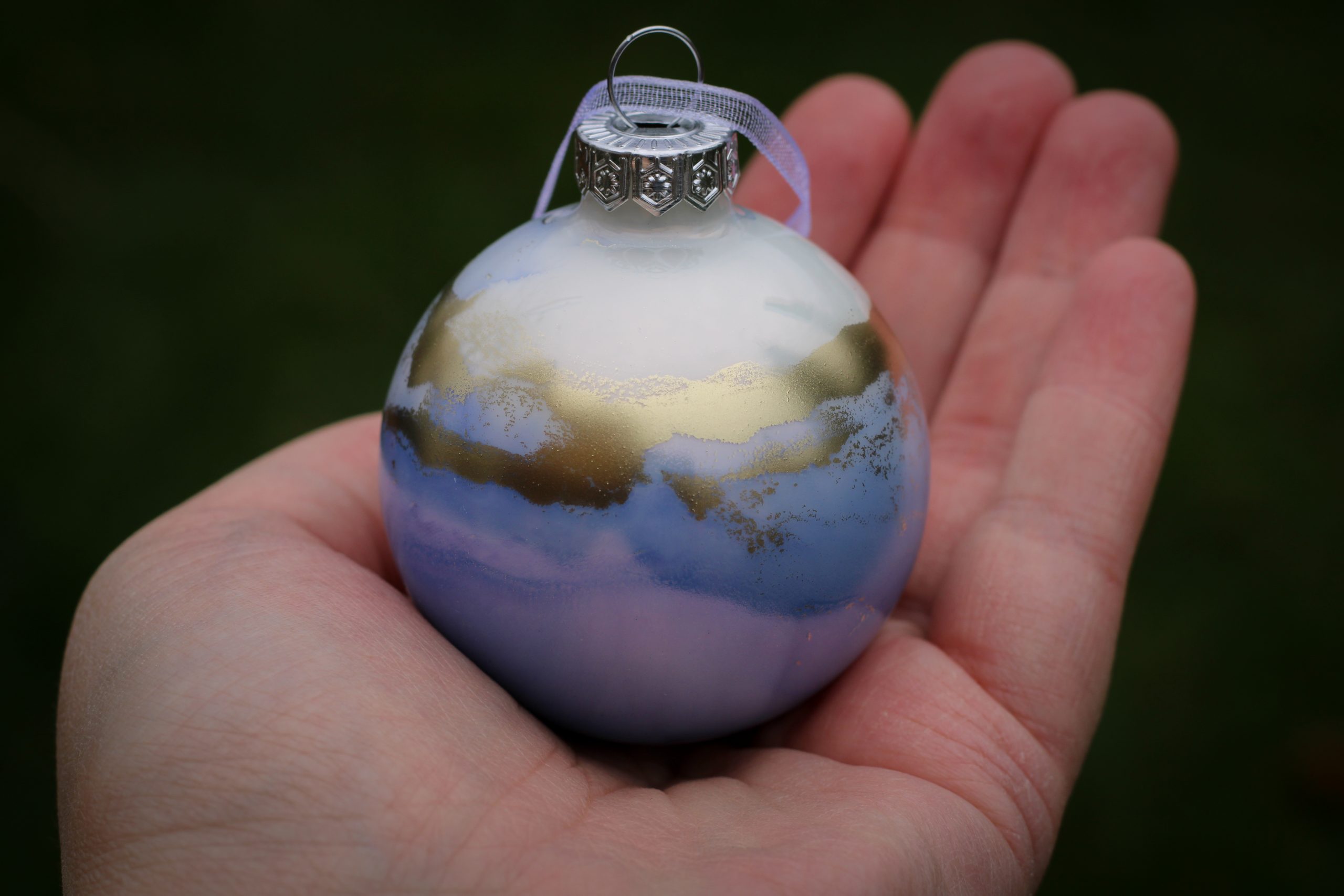 Alkoholos tintával egyedileg festett üveg gömbdísz. Átmérő: 6cm