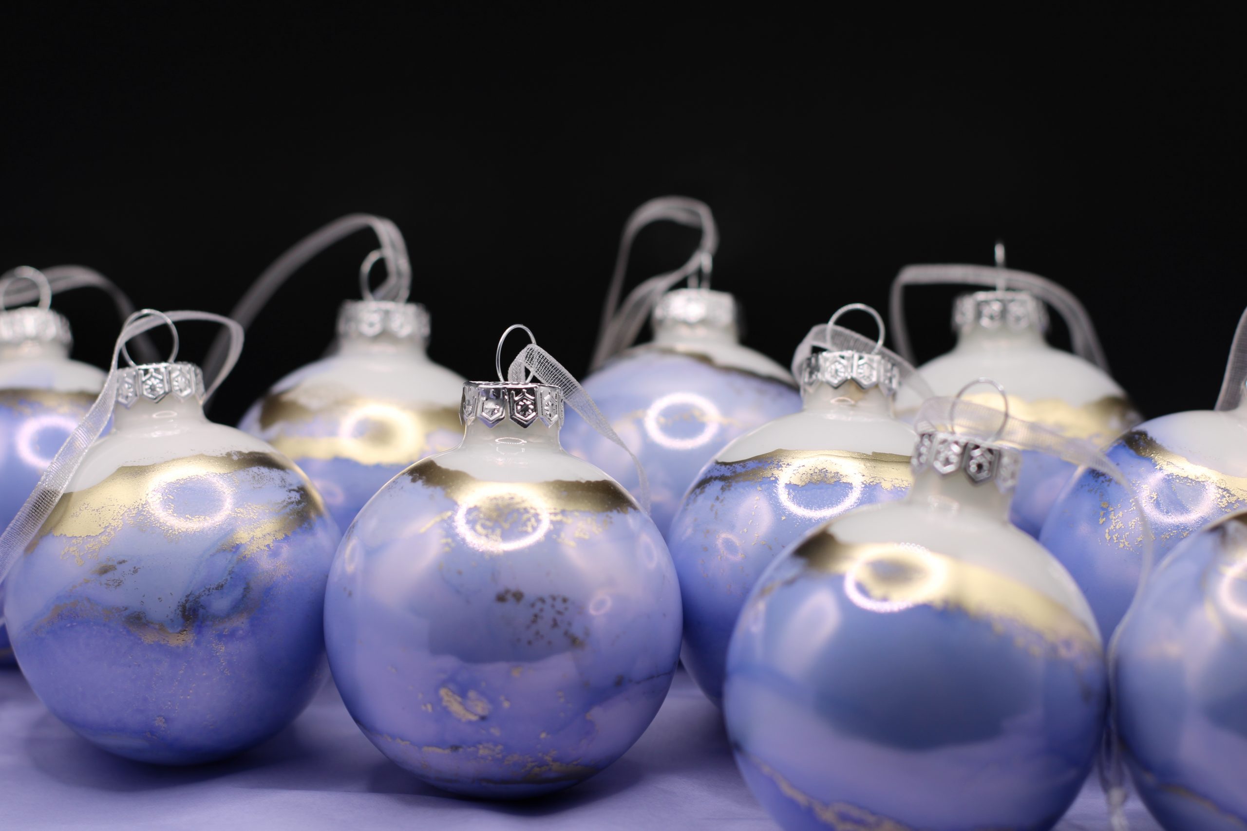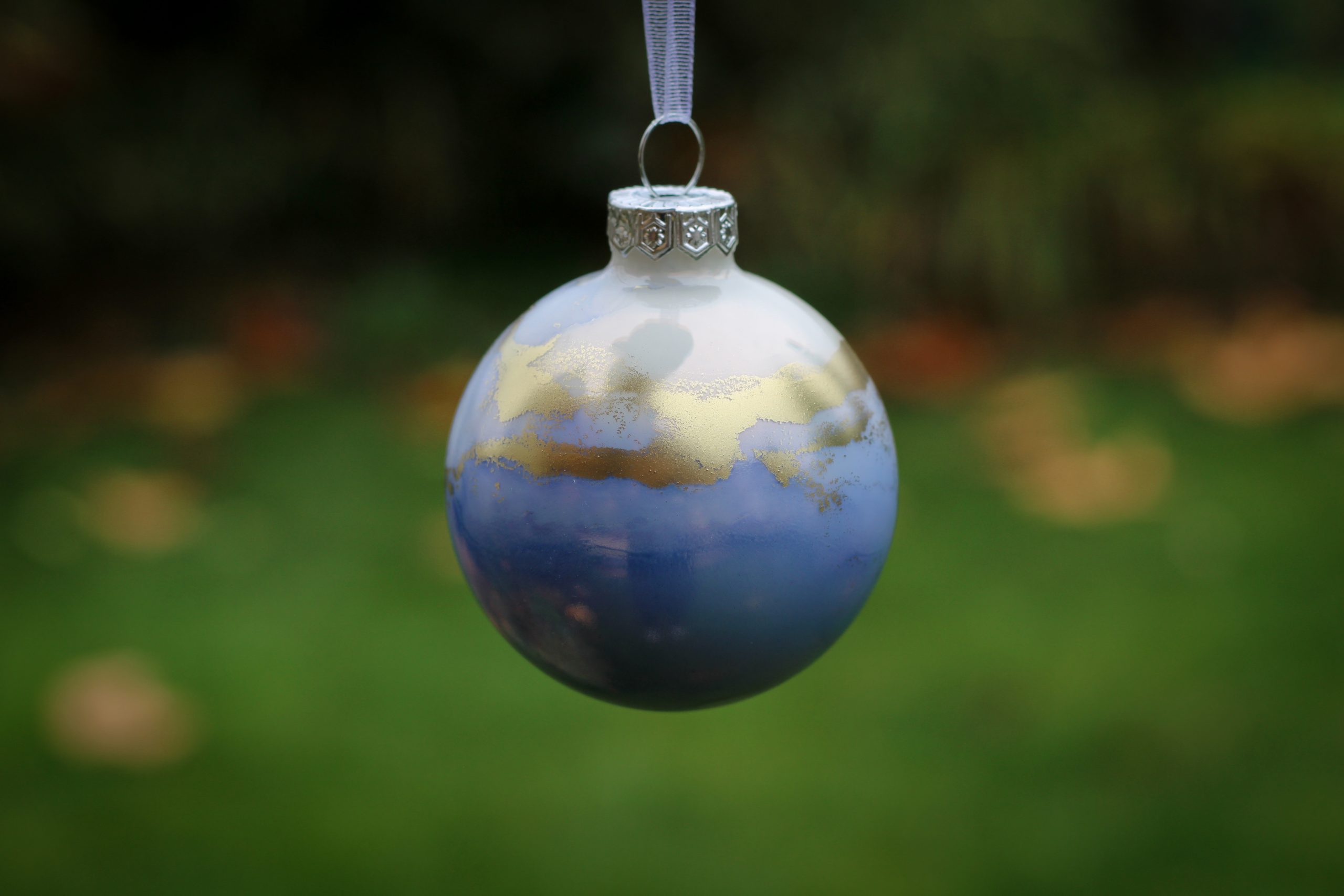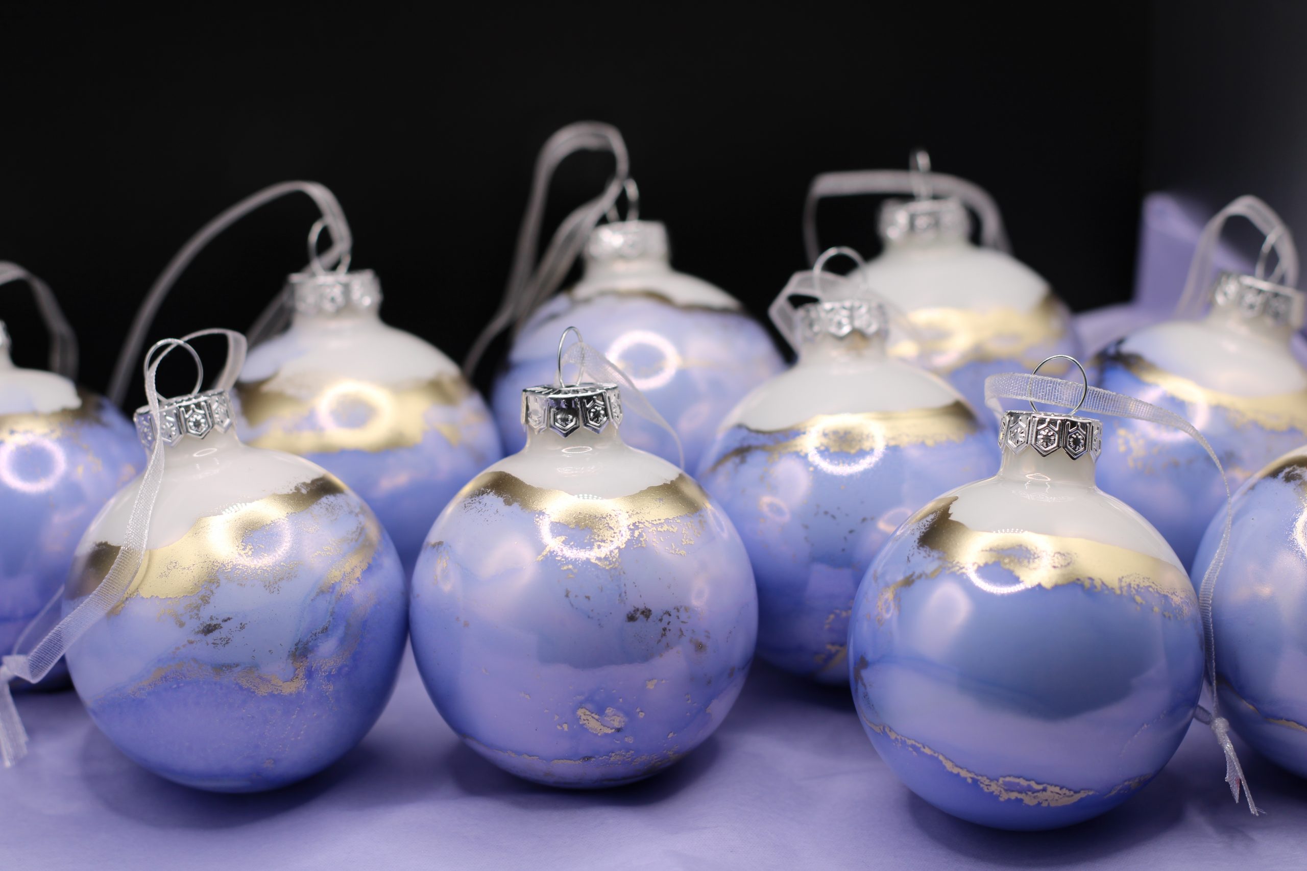 Alkoholos tintával egyedileg festett üveg gömbdísz. Átmérő: 6cm