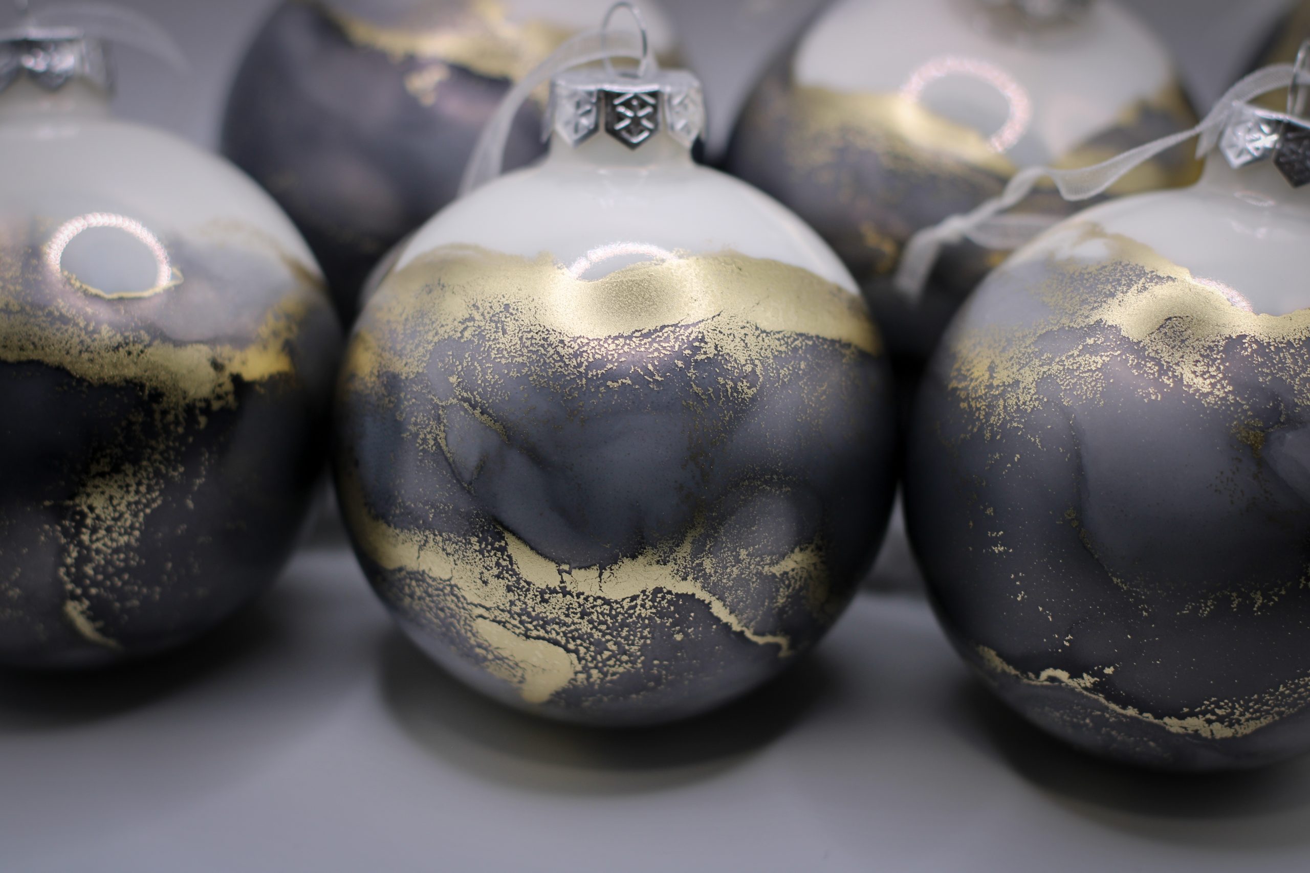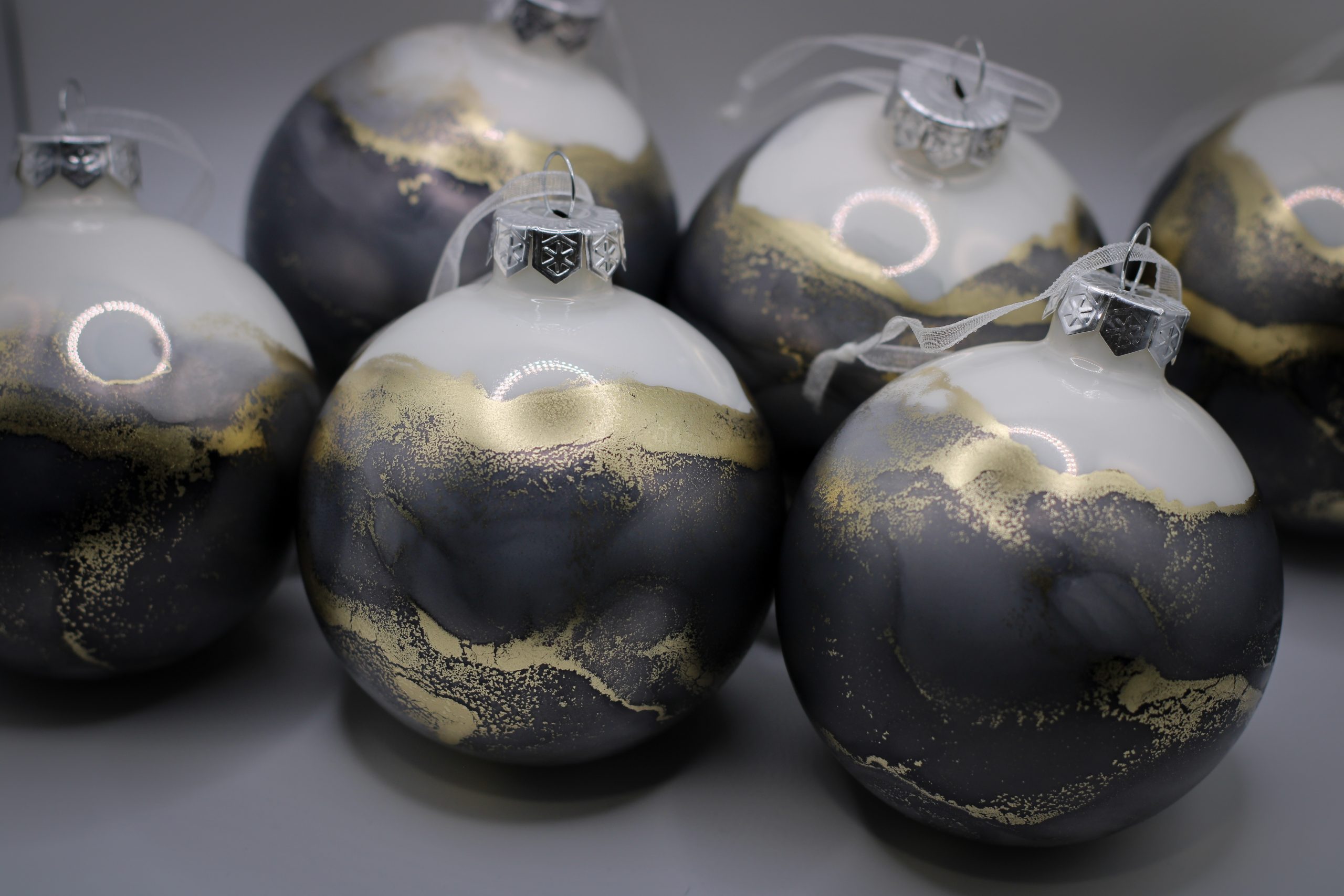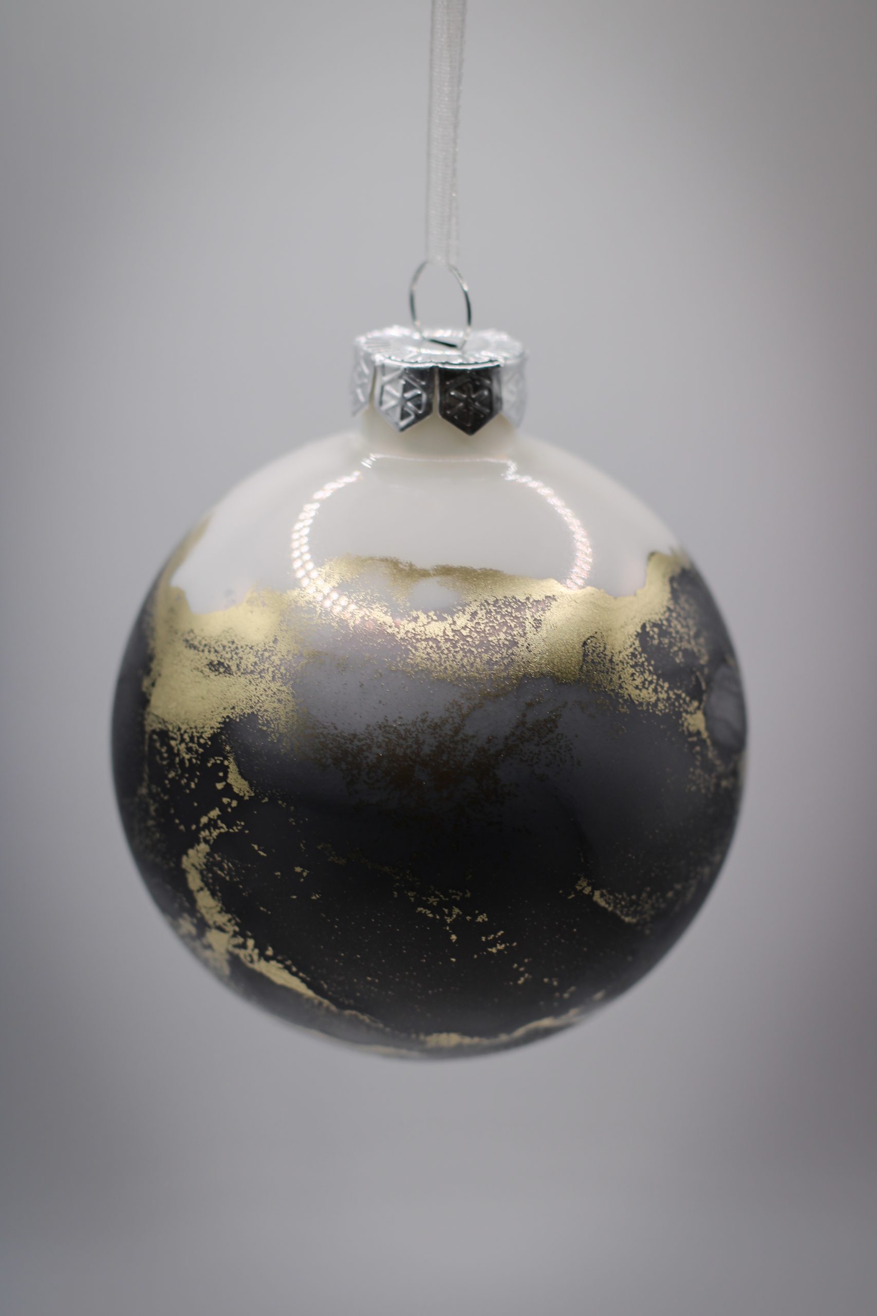 Alkoholos tintával egyedileg festett üveg gömbdísz. Átmérő: 8cm
