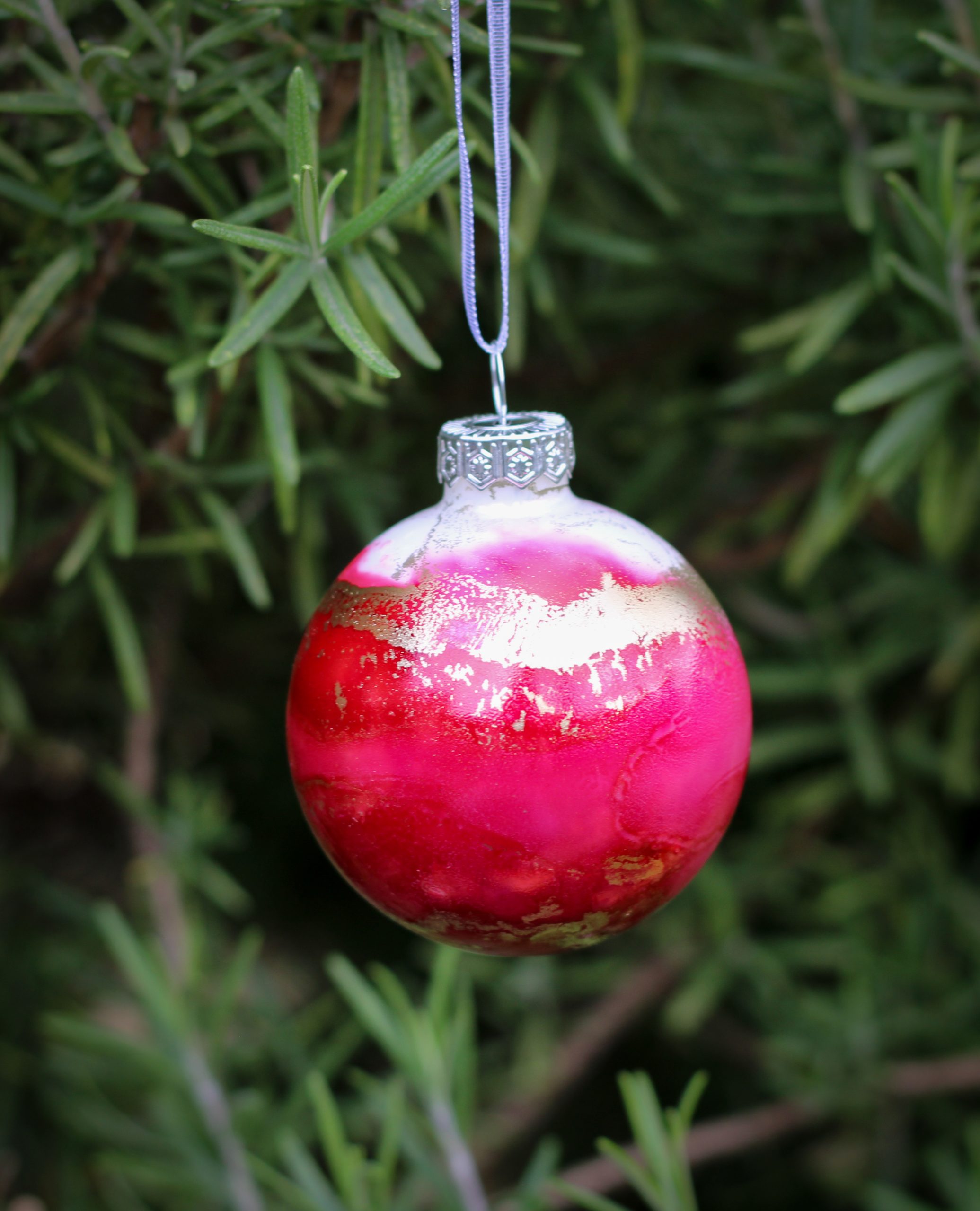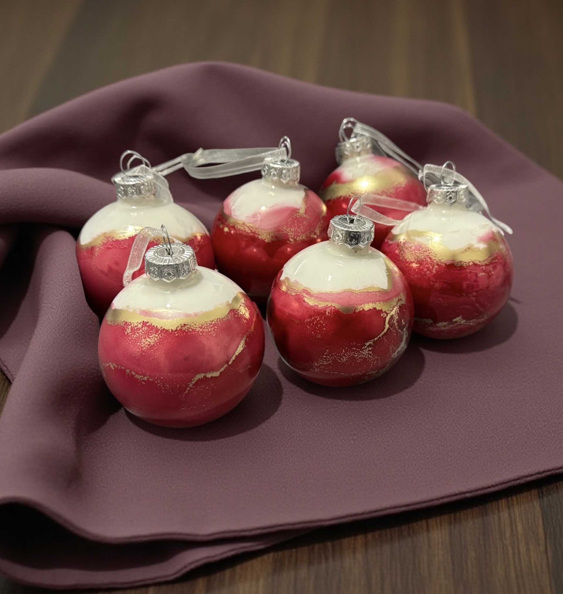 Alkoholos tintával egyedileg festett üveg gömbdísz. Átmérő: 6cm